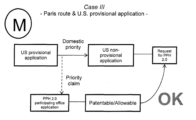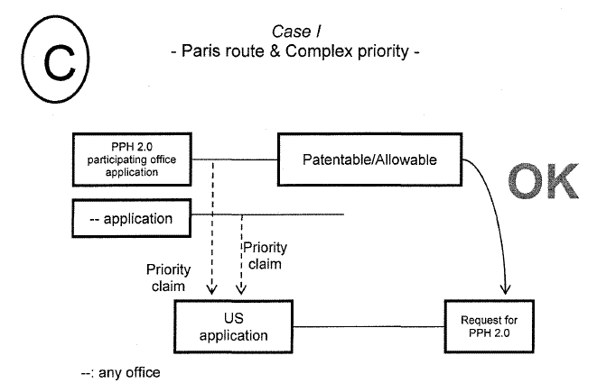 Case III – is an application which shares a common priority document with the application filed in the PPH 2.0 participating office (examples are provided in the ANNEX, Figures H, I, J, K, L, M, and N),
