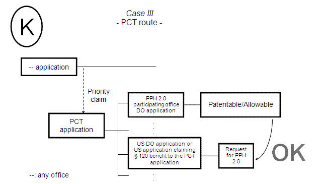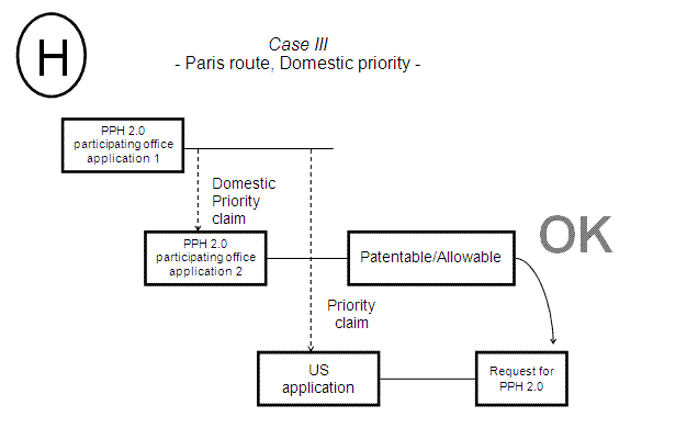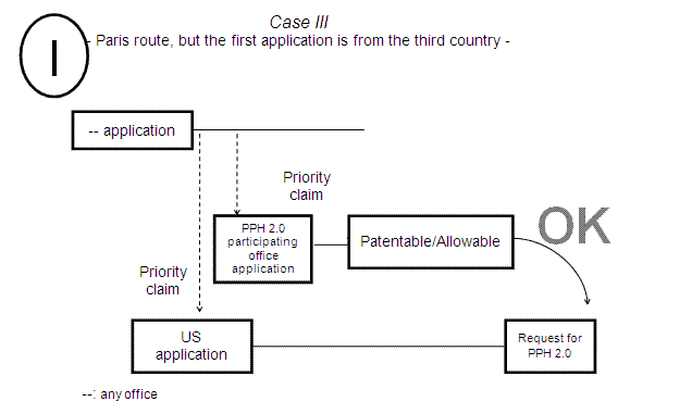 Case III – is an application which shares a common priority document with the application filed in the PPH 2.0 participating office (examples are provided in the ANNEX, Figures H, I, J, K, L, M and N),