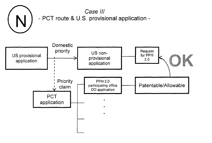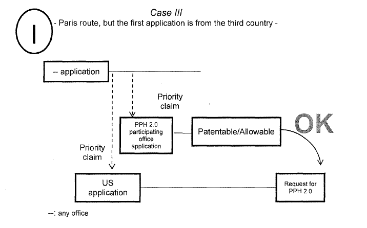 Case III – is an application which shares a common priority document with the application filed in the PPH 2.0 participating office (examples are provided in the ANNEX, Figures H, I, J, K, L, M and N),