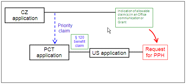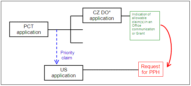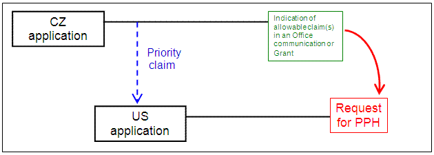 The CZ application whose claims are determined to be allowable/patentable does not have to be the application for which priority is claimed in the U.S. application (the basic application). The CZ application can be an application explicitly derived from the basic application (e.g., a divisional application of the basic application). Note that where the CZ application that contains the allowable/patentable claims is not the same application for which priority is claimed in the U.S. application, the applicant must identify the relationship between the CZ application that contains the allowable/patentable claims and the CZ priority application claimed in the U.S. application (e.g., CZ application X that contains the allowable/patentable claims is a divisional application of CZ application Y, which is the priority application claimed in the U.S. application).