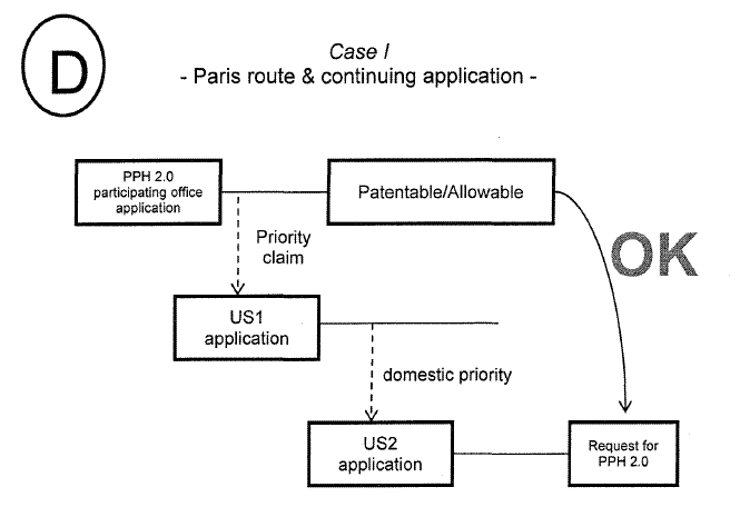 Case II – is an application which is the basis of a valid priority claim under the Paris Convention for the application filed in the PPH 2.0 participating office (examples are provided in the ANNEX, Figures E, F, and G),