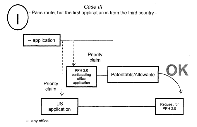 Case III – is an application which shares a common priority document with the application filed in the PPH 2.0 participating office (examples are provided in the ANNEX, Figures H, I, J, K, L, M, and N),