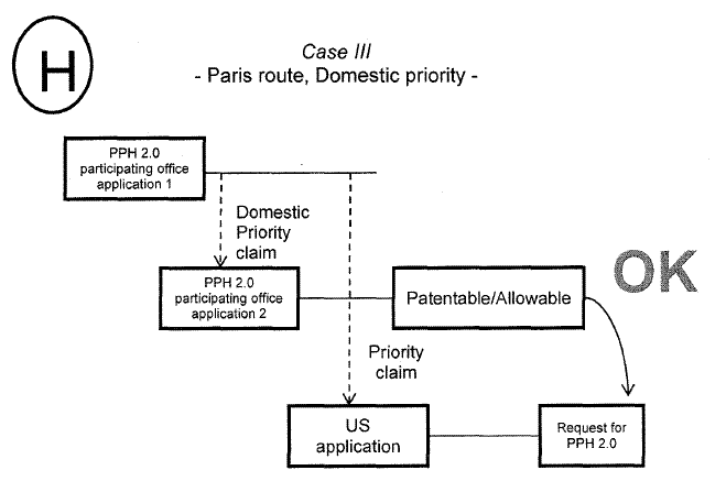 Case III – is an application which shares a common priority document with the application filed in the PPH 2.0 participating office (examples are provided in the ANNEX, Figures H, I, J, K, L, M and N),