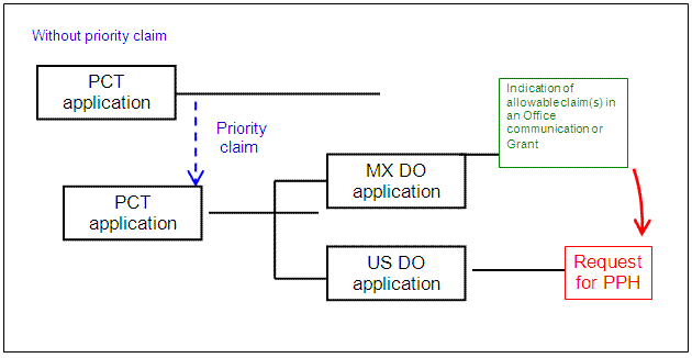 The MX application whose claims are determined to be allowable/patentable does not have to be the application for which priority is claimed in the U.S. application (the basic application). The MX application can be an application explicitly derived from the basic application (e.g., a divisional application of the basic application). Note that where the MX application that contains the allowable/patentable claims is not the same application for which priority is claimed in the U.S. application, the applicant must identify the relationship between the MX application that contains the allowable/patentable claims and the MX priority application claimed in the U.S. application (e.g., MX application X that contains the allowable/patentable claims is a divisional application of MX application Y, which is the priority application claimed in the U.S. application).