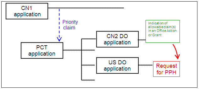 The CN application whose claims are determined to be allowable/patentable does not have to be the application for which priority is claimed in the USPTO application (the basic application). The CN application can be an application explicitly derived from the basic application, e.g., a divisional application of the basic application. Note that where the CN application that contains the allowable/patentable claims is not the same application for which priority is claimed in the U.S. application, the applicant must identify the relationship between the CN application that contains the allowable/patentable claims and the CN priority application claimed in the U.S. application (e.g., CN application X that contains the allowable/patentable claims is a divisional application of CN application Y, which is the priority application claimed in the U.S. application).