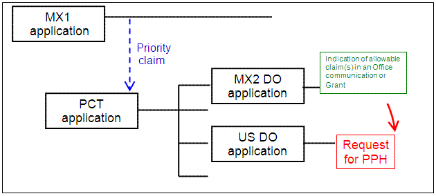The MX application whose claims are determined to be allowable/patentable does not have to be the application for which priority is claimed in the U.S. application (the basic application). The MX application can be an application explicitly derived from the basic application (e.g., a divisional application of the basic application). Note that where the MX application that contains the allowable/patentable claims is not the same application for which priority is claimed in the U.S. application, the applicant must identify the relationship between the MX application that contains the allowable/patentable claims and the MX priority application claimed in the U.S. application (e.g., MX application X that contains the allowable/patentable claims is a divisional application of MX application Y, which is the priority application claimed in the U.S. application).