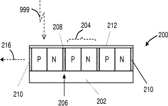 The Figure illustrates an image sensor (110j) having reflective thin films of SiN (140) formed above photodiodes (18).