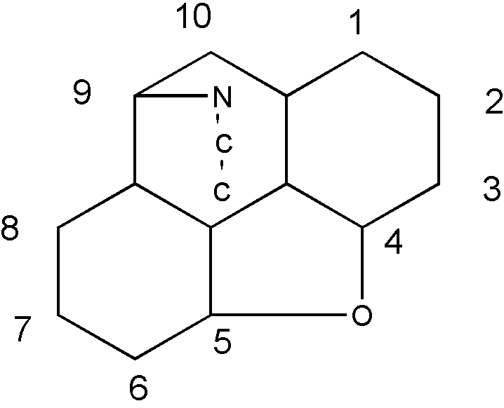 Similarly, the structure shown in Figure 13 is considered to be a pentacyclo ring system having three six-membered carbocyclic rings, one five-membered hetero ring consisting of one ring oxygen and four ring carbons, and one six-membered ring consisting of one ring nitrogen and five ring carbons.