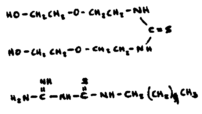 18 | Thiocarbazides or thiosemicarbazides (i.e. HNH-NH-C(=S)-HNH, wherein the N bonded directly to the thiourea N is an amino N and substitution may be made for hydrogen only) | ||